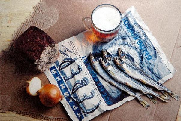 Из прихожей сразу попали в обширную комнату, где занимались разными делами несколько бородатых мужичков, стояла вместительная металлическая коптильня с развешанной в ней вяленой корюшкой, верстак, столы, сети и другой разномастный инвентарь. В следующей комнатке хозяин выложил перед нами пару мешков с копчёной корюшкой и несколько литровых пластмассовых ведёрок с красной икрой.