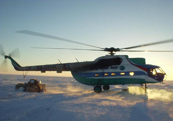 Еще одним транспортным средством, связывающим промысел с Анадырем является вертолет.