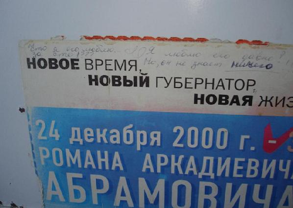 То, что губернатора действительно любят, не уважают, а именно любят, мы убедились тут же, заглянув по ходу прогулки в квартиру, арендуемую нашими подрядчиками. Квартира была обставлена хозяйской мебелью и на кухне, на дверке старенького холодильника поверх переводных картинок, я обнаружил предвыборную рекламную листовку, на которой синей ручкой была сделана следующая обрывочная, почти стихотворная надпись: 'Что я его люблю... за что!??? Я люблю его давно! Но, он не знает ничего!!!'