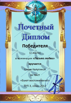 В конкурсе "Такая разная любовь-3", номинация "Письмо любви"