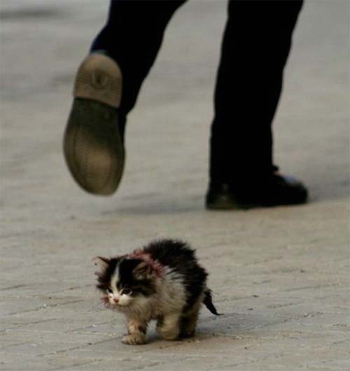 Котёнок мокнет под дождём,